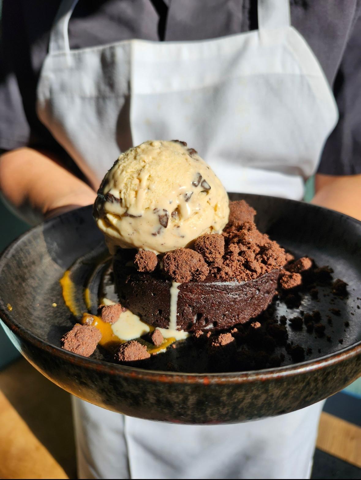 spiced pumpkin toffee sauce, brown sugar chocolate chip ice cream, coffee crumble